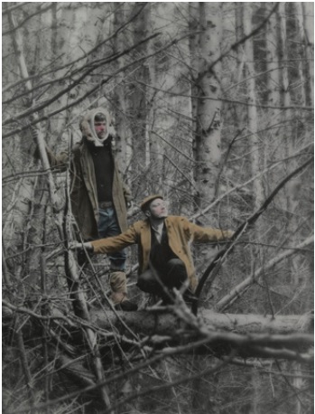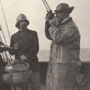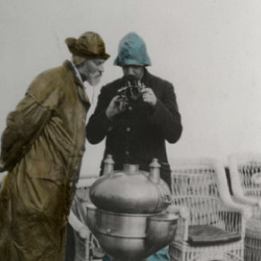 Cristina de Middel recreates this story by recording the missing video from the AMC archive, shot in Super 8 and following the mise-en-scene described in the captain's diary. After the making of the video, the artist developed the project with a series of photographs taken on Skye Island in Scotland that are mixed with those of the original background. The two sets of images form a mural of 50 photographs and two showcases with material from 1911.